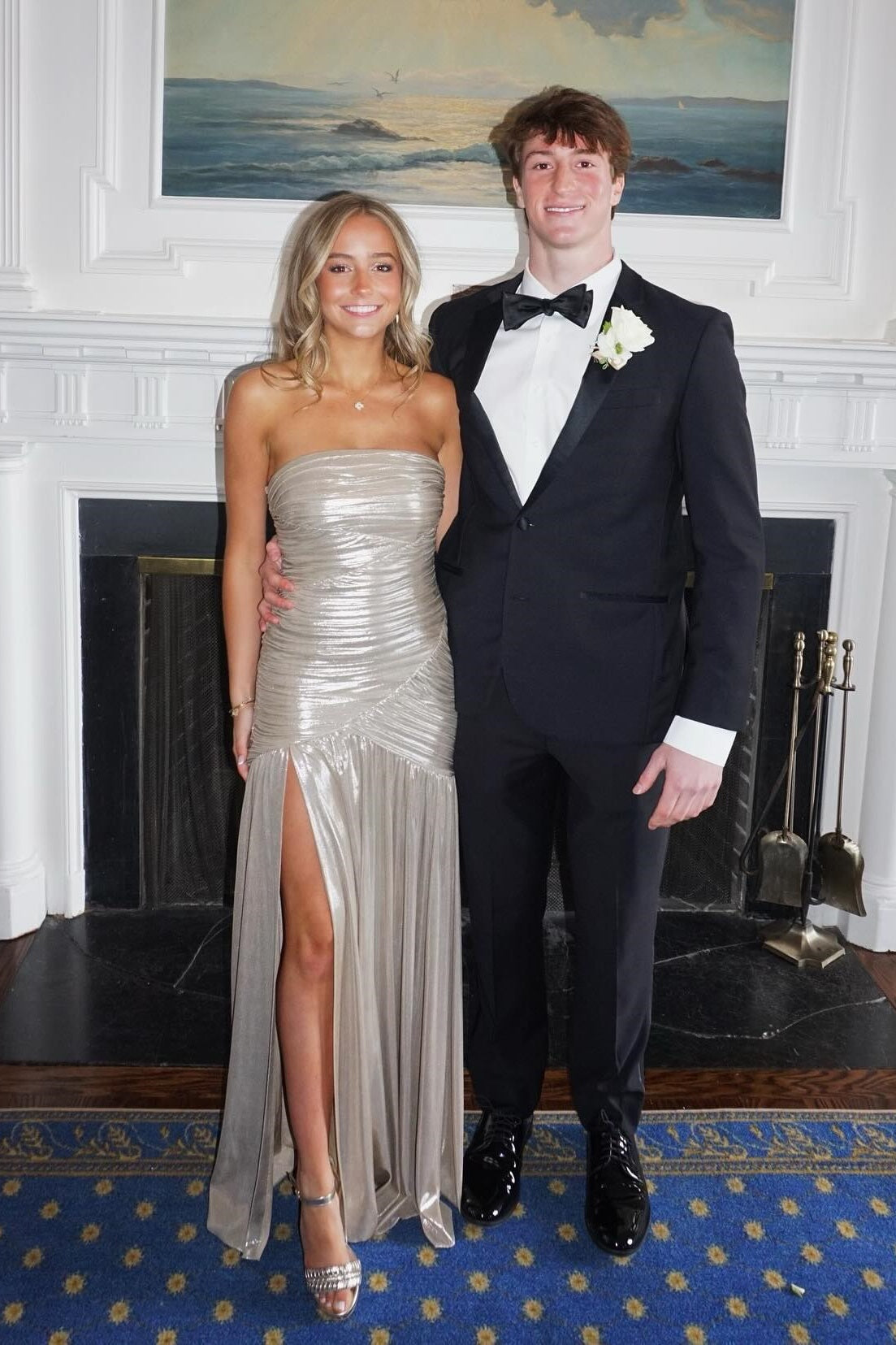 Strapless Metallic Silver Pleated Long Dress
